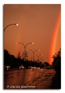 deux arc-en ciel, rue mouillé, reflets, c’était magnifique !
