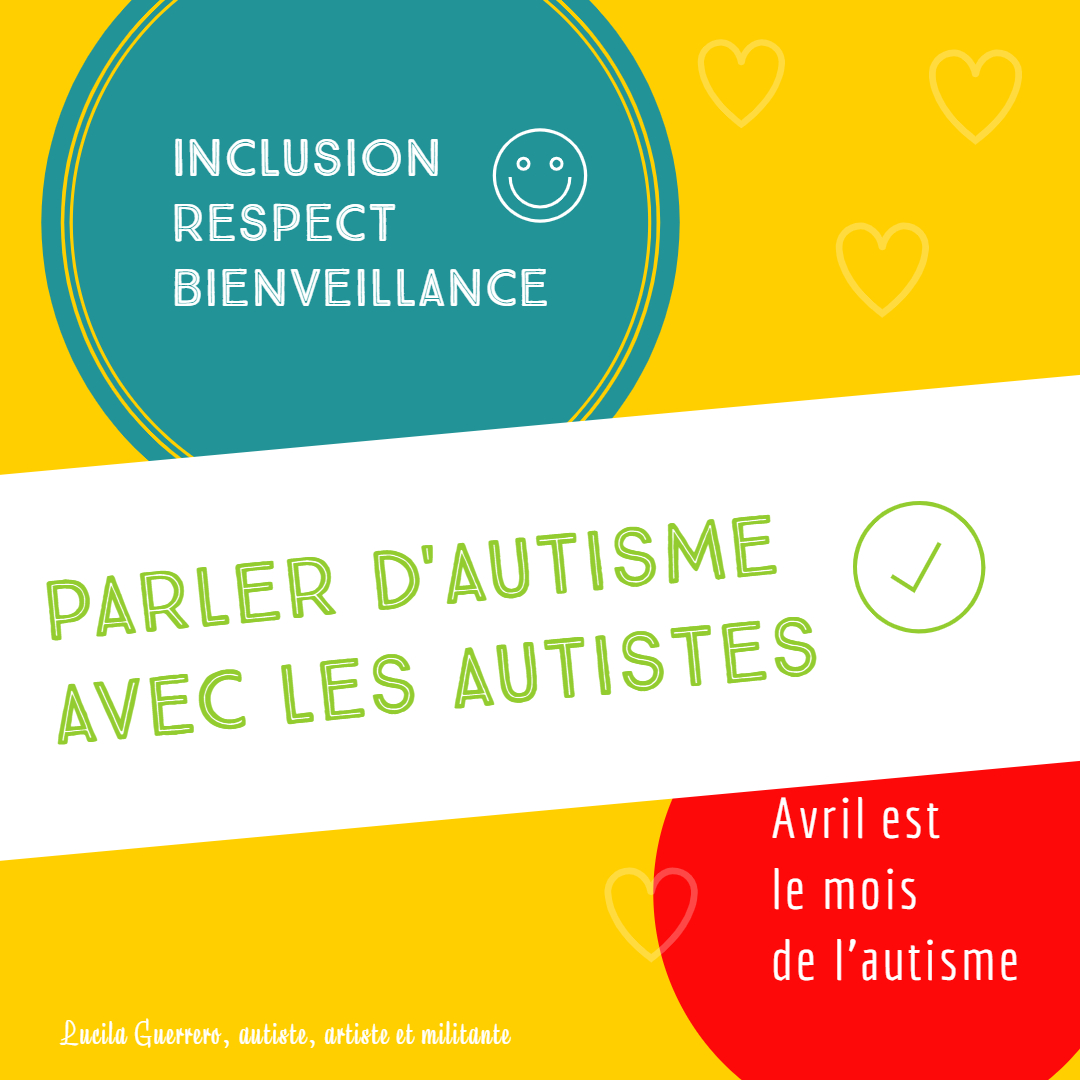 Pour terminer, je nous encourage à continuer dans cette direction, à répandre une vision positive de l’autisme pour bâtir ensemble des modèles inclusifs. Ce mois d’avril parlons d’acceptation, de reconnaissance positive, d’inclusion et de participation social en tenant compte de nos intérêts et nos capacités.