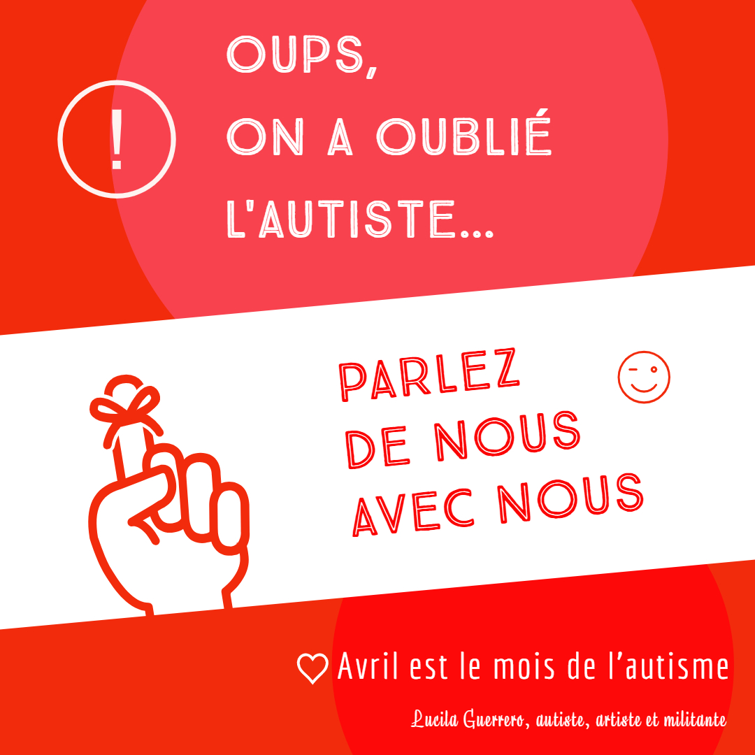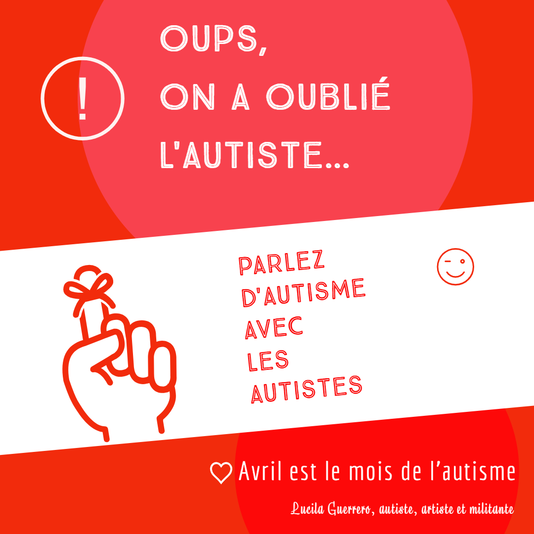 Depuis quelques jours, je vois les gens mobilisés sur les réseaux sociaux, pour annoncer ou mettre en place des initiatives pour le mois de l’autisme. Ces gens mobilisés se sont regroupés spontanément. Autistes et non-autistes en faveur des autistes. C’est très beau. Vraiment.