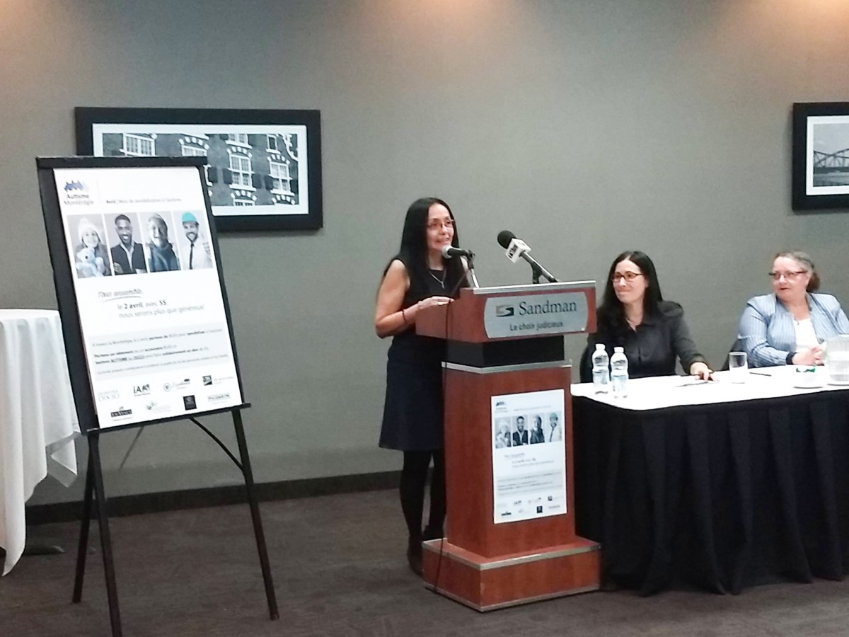 « Je suis très heureuse d’avoir été invitée à prendre la parole cette journée de lancement de la célébration du mois d’avril, le mois de l’autisme, par Autisme Montérégie. Pendant une grande partie de ma vie, je me suis senti une étrangère dans ce monde. Avec le temps, je me suis rendu compte que se sentir étrangère dans une société veut dire se sentir exclu. Et c’est précisément ce type de gestes qui nous disent : tu n’es pas une étrangère, tu fais partie de la communauté, ce que tu as à dire est important pour nous. Vous comprenez?