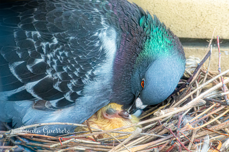 Nous étions en juillet, la belle saison ! J’entendais des roucoulements et des battements d’ailes sur mon balcon. Je me suis approchée à la fenêtre pour voir ce qui se passait. Un couple de pigeons avait commencé à construire son nid sur le sol, à l’arrière de la porte. « Comme c’est mignon ! » – me je suis dit. Avec toutefois une petite inquiétude. Je risquais de ne plus pouvoir ouvrir ma porte sans les déranger.