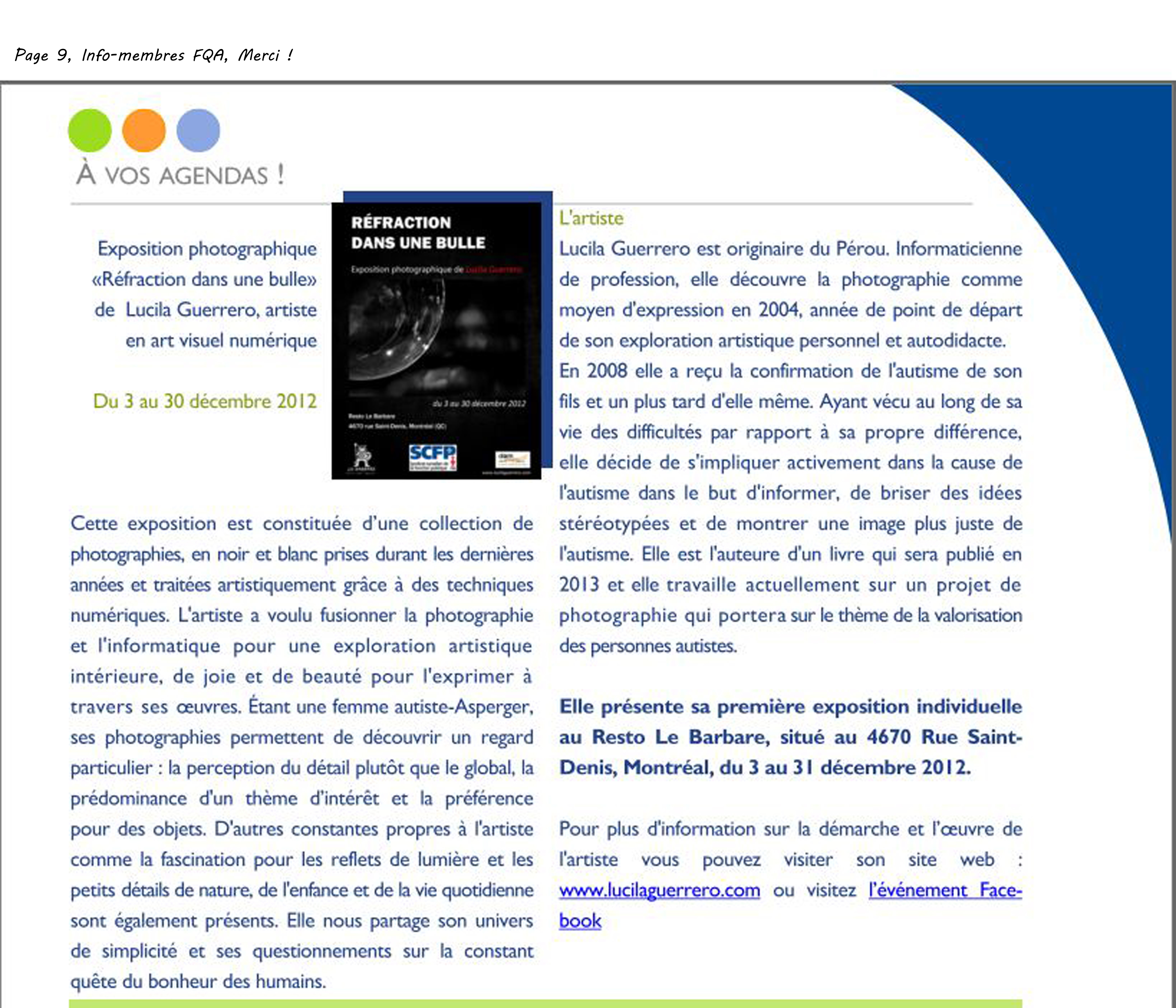 L’autisme vu autrement, Le bulletin info de La basse-lièvre