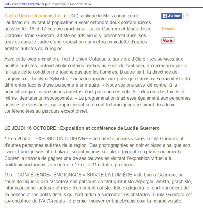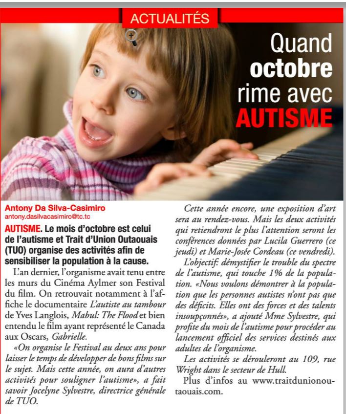 Conférence d’une autiste Asperger à Gatineau, Radio Canada