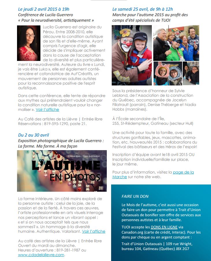 L’autisme vu autrement, Le bulletin info de La basse-lièvre