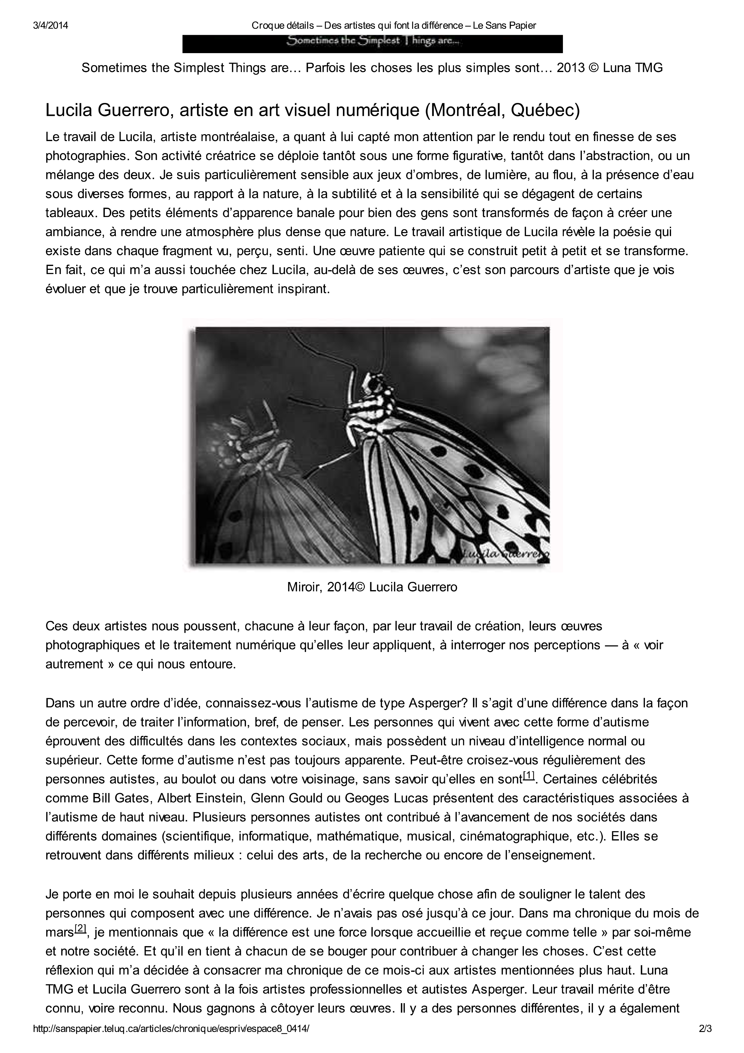 L’autisme en photos, La presse