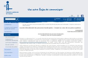 Journée internationale des personnes handicapées : L’emploi au cœur de nos préoccupations, Site web de la Fédération québécoise de l’autisme